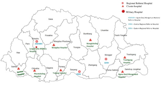 JDWNRH (Thimphu) CRRH (Gelephu) ERRH (Mongar)